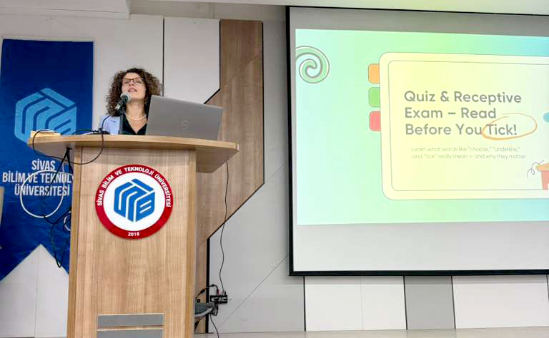 Sivas Bilim ve Teknoloji Üniversitesi 1. Etap Konferans Salonu’nda, Öğr. Gör. Maria Aydın tarafından “İngilizce Hazırlık Sınıfı Vize Sınavları İçin İpuçları ve Püf Noktaları” etkinliği düzenlendi.