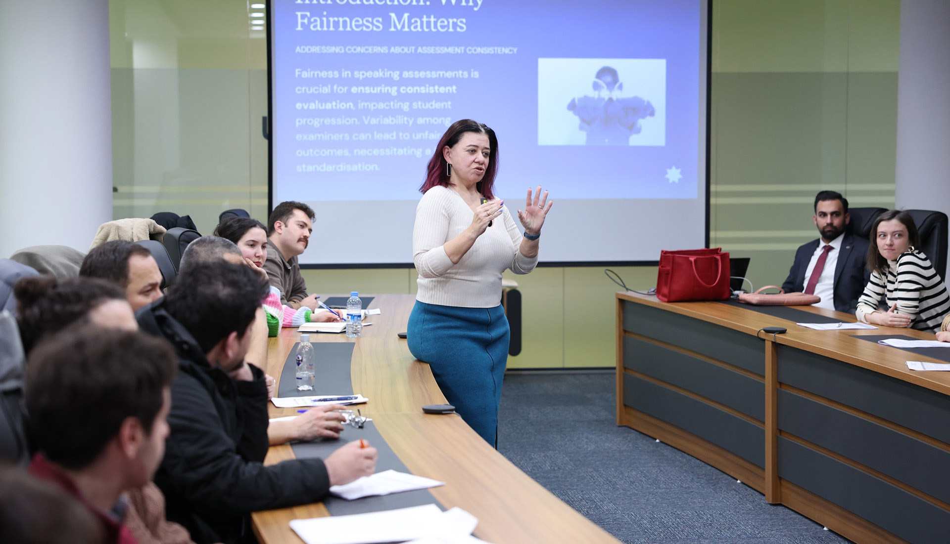 Eğitim süresince, İngilizce dil becerilerinin bütüncül bir yaklaşımla ölçülmesine yönelik güncel ölçme ve değerlendirme yöntemleri katılımcılarla paylaşıldı. Ayrıca akademik personelin sınav uygulamalarında karşılaştığı durumlara ilişkin örnekler üzerinden çözüm önerileri tartışıldı. Katılımcıların aktif katkılarıyla interaktif bir şekilde gerçekleşen eğitim, ölçme ve değerlendirme süreçlerinde ortak bir anlayış geliştirilmesine önemli katkı sağladı.